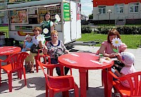 Пришедшим в офис женщинам вручали букетики из полевых ромашек, создавали праздничную атмосферу и поднимали настроение.
