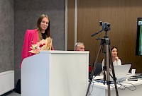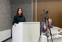 Главный специалист по планированию Анастасия Рыбакова сообщила коллегам о работе Клуба молодых специалистов* и пригласила вступить в клуб. Клуб молодых специалистов – это комфортная профессиональная среда, в которой созданы условия для обмена опытом, идеями, технологиями, а также впечатлениями и эмоциями, для решения тех или иных задач; где общение становится максимально конструктивным и продуктивным.. Проинформировала коллег о старте конкурса Лиги КС «Молодые специалисты кредитной кооперации».