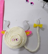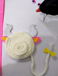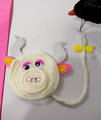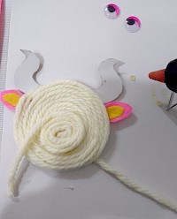 Пряжей создаем объемный нос, приклеиваем бусины и глаза.