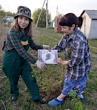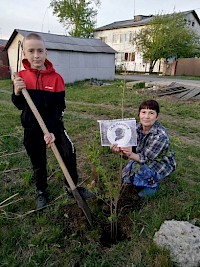 Специалист офиса Галина Поспелова и пайщица Татьяна Уфимцева приняли участие в международной акции «Сад Памяти», высадив саженцы вишни и сирени в селе Новая Заимка Заводоуковского районе.