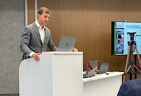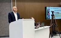 Руководитель департамента основной деятельности Федор Иванус представил коллективу предварительные итоги проекта «Эффективный куратор». Целью данного проекта является построение эффективной бизнес-модели управления дополнительными офисами через куратора.