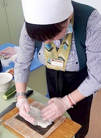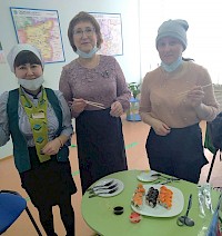На мастер-классе абатчане научились правильно нарезать ингредиенты, варить рис и формировать форму рулета.