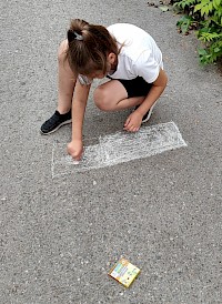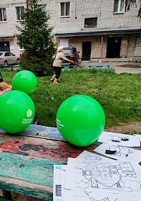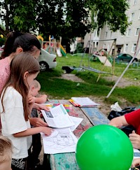Все расположились прямо во дворе: младшие дети раскрашивали раскраски и искали выход для героя схематичного лабиринта. Дети постарше рисовали мелом на асфальте. А взрослые и подростки прослушали урок финансовой грамотности на тему кибермошенничества. Всем участникам урока были вручены памятки как обезопасить себя от мошенников в интернете и мессенджерах.