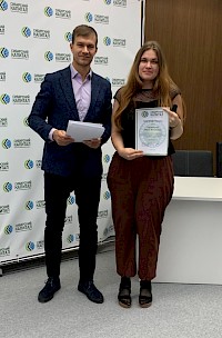 Начальник отдела маркетинга Наталья Гузь поздравила участников с завершением соревнования «Человек идущий», огласила результаты и победителей. Управляющий Вадим Головко вручил почетные грамоты всем участникам, а десятке лучших были вручены подарки. Наталья поблагодарила всех участников флэшмоба; анонсировала заключительный этап соревнований с вручением подарков победителям.