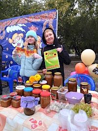 Традиционно, на празднике была организованна выставка урожая и разных сортов меда.