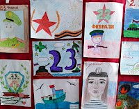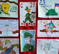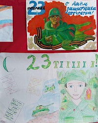 Учащиеся Большереченской средней школы №2 и Одесской школы №1 прослушали историю возникновения праздника, ответили на вопросы викторины «Я защитник», нарисовали рисунки на военную тему.