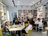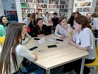 В Кормиловской модельной библиотеке прошла интеллектуально-познавательная игра «ПоКВИЗим?». Одиннадцатиклассники Кормиловской средней школы №1 разделились на три команды «Крутые знатоки», «Умные и красивые» и «Дерзкие интеллектуалы».