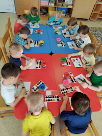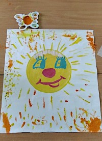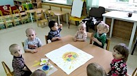 Дети младшей группы нарисовали большой общий рисунок – яркое солнышко, которого так не хватает в хмурые зимние дни.