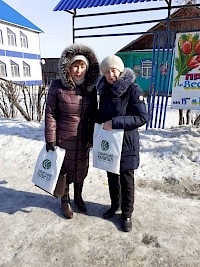 Не остались в стороне и жительницы населенных пунктов присутствия кооператива, так специалисты в р.п. Тугулым и р.п. Большеречье вышли на улицу и создавали праздничное настроение вручением весенних цветов. В с. Азово совместно с партнером Всероссийским обществом инвалидов (ВОИ) поздравляли одиноких женщин с наступающим праздником 8 марта – вручили тюльпаны и сувениры от кооператива. Они были растроганы таким душевным поздравлением до слез.