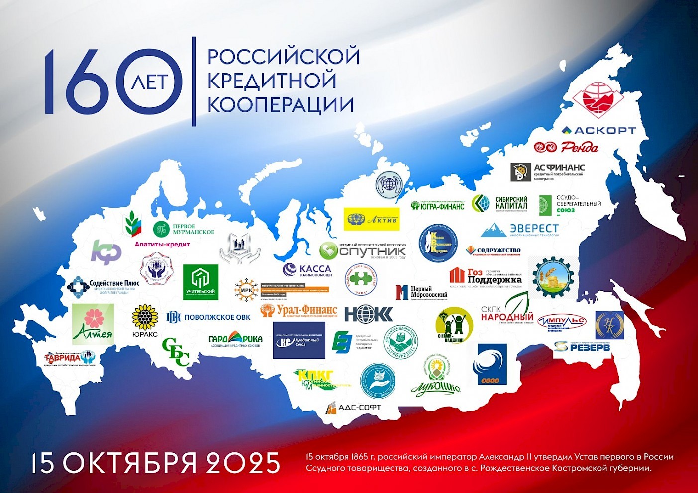 Именно в память об этом событии с 2015 года мы и отмечаем 15 октября как День российской кредитной кооперации. В этот юбилейный год мы с особой гордостью чествуем наши общие ценности - взаимопомощь, солидарность и доверие, которые вот уже на протяжении 160 лет помогают нам поддерживать друг друга в достижении финансовых целей.