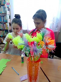 Голышманово. В сельской библиотеке пайщица кооператива Елена Зелинская для всех желающих мастер-класс на тему «Мы дарим женщинам цветы!», посвящённый первому весеннему празднику. На празднике также читали стихи, пели песни, играли в игры.