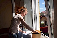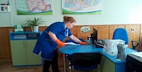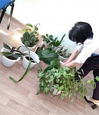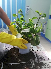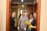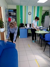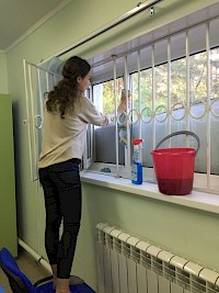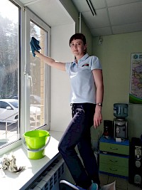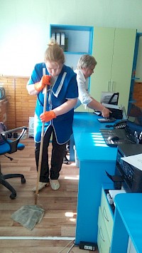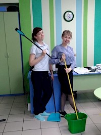 Дружно разобрав рабочий инвентарь: чистящие средства, ведра, тряпки и вооружившись перчатками, вымыли окна, двери, полы; протерли пыль на всех поверхностях; пересадили цветы; выбросили всё ненужное, освободив пространство вокруг себя.